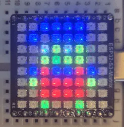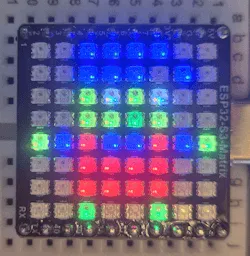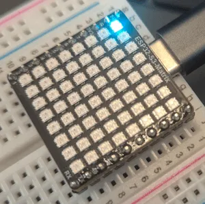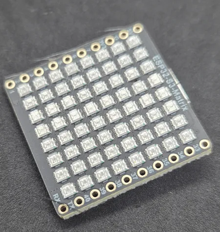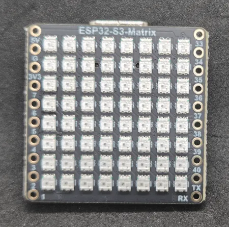 Die RGB-LED-Matrix auf dem ESP32-S3-Matrix Board ist fest verlötet und folgt einem 8×8-Raster, also 64 einzeln adressierbaren LEDs.