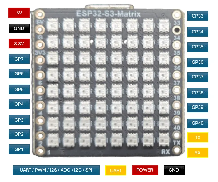 Abgesehen davon sind nahezu alle GPIOs vielseitig nutzbar: Sie unterstützen UART, PWM, I2S, ADC, I2C und SPI-Kommunikation.