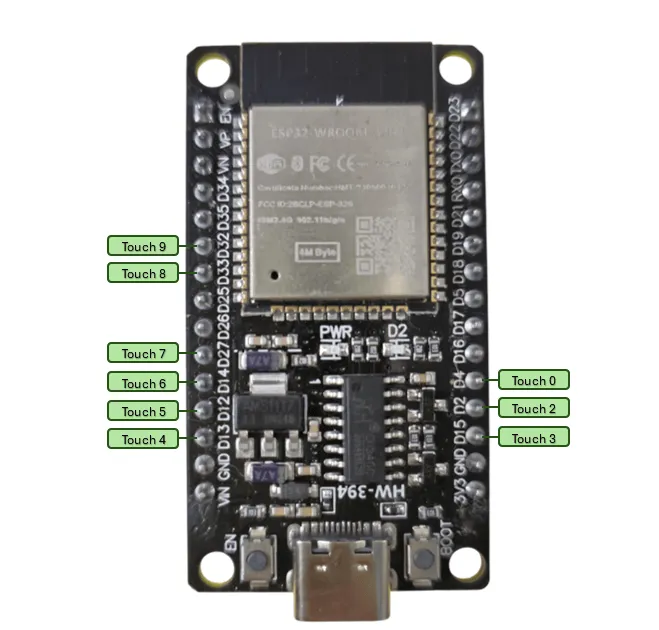 Touchpins am Wemos D1 R32Touchpins am ESP32-WROOM-32D Mikrocontroller