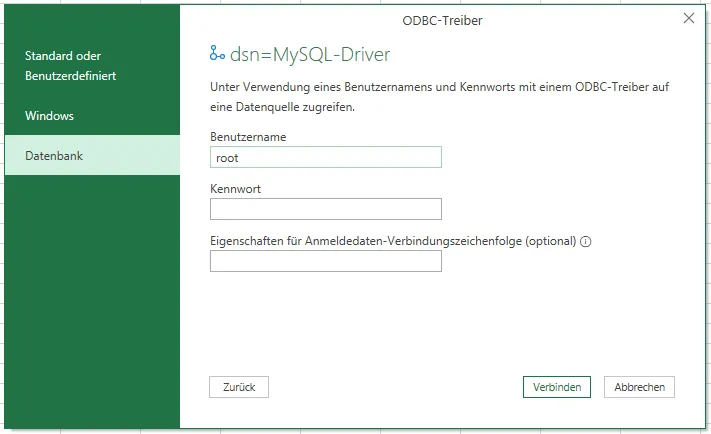 Schritt 3 – Aufbauen der Datenverbindung in Microsoft Excel zur MySQL Datenbank