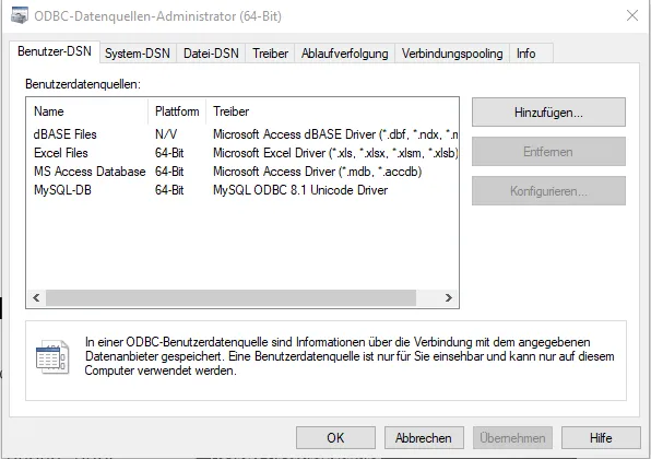 - den benötigten ODBC-Datenbanktreiber installierst,