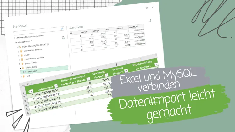 In diesem Beitrag möchte ich dir zeigen, wie du Microsoft Excel mit einer MySQL Datenbank verbindest und Daten aus dieser ausliest und anzeigst. Im vorherigen Beitrag habe ich dir gezeigt, wie man Messdaten eines Shelly Plus 1PM Mini in eine MySQL Datenbank via PowerShell Skript speichert, an diesen möchte ich hier nun anknüpfen.