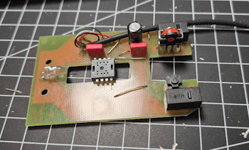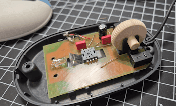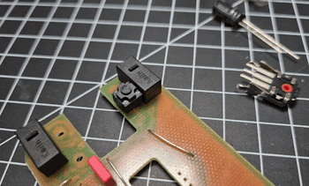 Beim Bausatz sind die feinen SMD-Bauteile bereits sauber auf die Platine gelötet, sodass man sich auf die größeren Komponenten konzentrieren kann. Schritt für Schritt werden hier die Taster, der Mikroschalter für die Klicks, die Scrollradmechanik und der USB-Anschluss eingesetzt und verlötet.