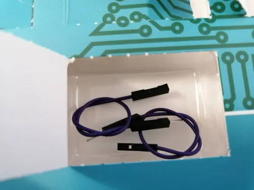 Wenn wir nun das Türchen öffnen, finden wir wieder einmal zwei kleine 10 cm Breadboardkabel (juhu nee wirklich).