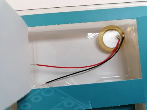 Wenn wir nun das Türchen öffnen, finden wir einen Piezo Summer.