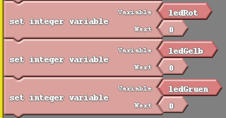 Für die Status der LEDs (AN/AUS) legen wir uns ganzzahlige Variablen an und benennen diese entsprechend mit led<Farbe>.