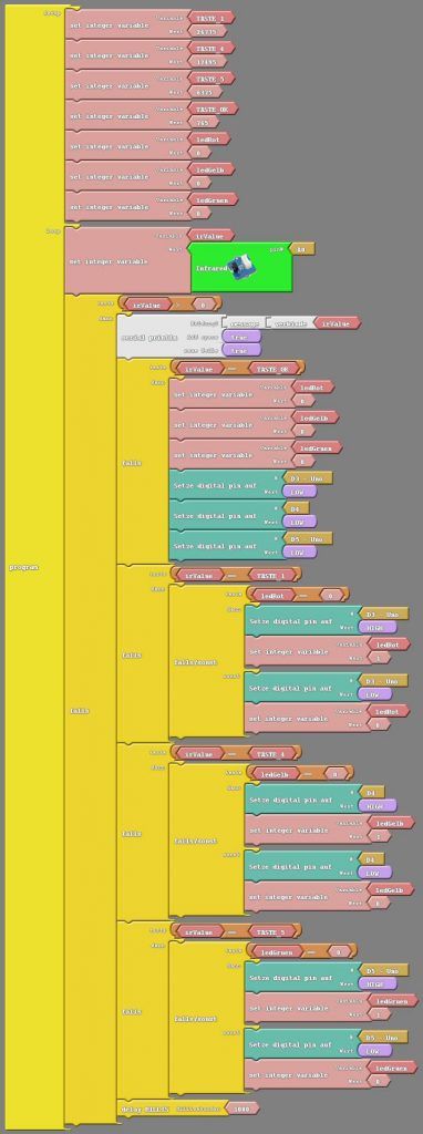 Programm zum Steuern der LEDs per Infrarot Fernbedienung am Funduino-Cube