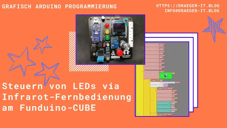 In diesem zweiten Teil möchte ich dir gerne zeigen, wie du am Funduino-Cube die LEDs per Infrarot-Schnittstelle steuern kannst.