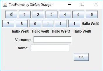 Die Testanwendung enthält die Felder für „Vorname“ & „Name“ sowie die Schaltfläche „OK“.