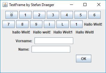 Die Testanwendung enthält die Felder für „Vorname“ & „Name“ sowie die Schaltfläche „OK“.