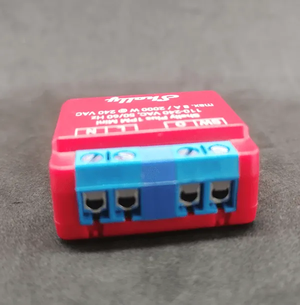 Der Shelly Mini verfügt über ein Relais, welches wir über die Shelly Smart Control App / oder dm Webfrontend des Gerätes ein und ausschalten können. Hier haben wir lediglich einen Schraubanschluss zur Verfügung, welcher mit „O“ für Output / Ausgang beschriftet ist.