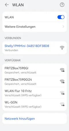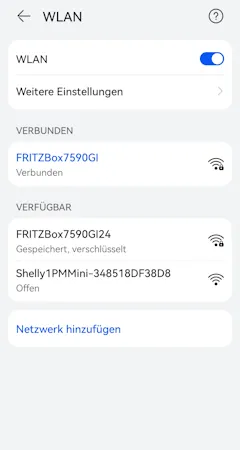 Wichtig ist, dass du deinen Shelly mit einem 2.4 GHz WiFi-Netzwerk verbindest, in meinem Fall wurde das 5 GHz Netzwerk von meinem Handy vorgeschlagen, dieses musste ich dann manuell anpassen.