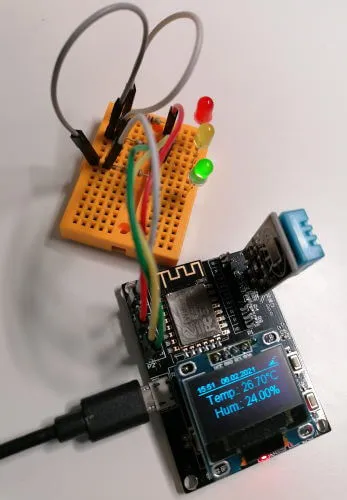 Wie man den angeschlossenen DHT11 Sensor ausliest, habe ich im oben verlinken Beitrag bereits gezeigt, jedoch möchte ich in diesem Beitrag ESP Easy nutzen, um am ESP8266 eine akustische & optische Meldung zu konfigurieren.