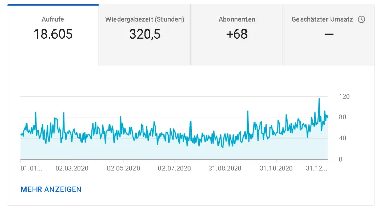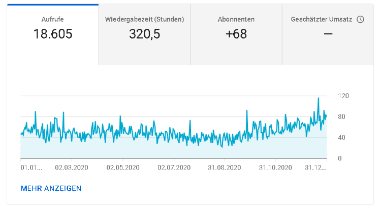 Meine Videos zu den Beiträgen speichere / veröffentliche ich ab einer bestimmten Dateigröße auf YouTube. Das hat zum einen den Vorteil, dass dieser Speicherplatz nicht von meinem Webspace abgezogen wird und zum anderen das die Zielgruppe vergrößert wird. Auch das Jahr 2020 war auf YouTube relativ erfolgreich.
