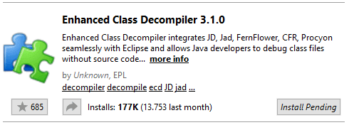 Für das decompilieren verwende ich das Eclipse Plugin „Enhanced Class Decompiler“ welches bequem über den Marketplace installiert werden kann.