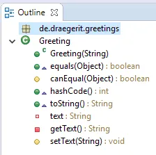 Und der Tab „Outline“ zeigt nun die Methoden, an welche wir durch die Annotationen ersetzt haben.