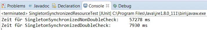 Dieser JUnit Test erzeugt den Output auf der Konsole, wo man deutlich den Zeitunterschied erkennen kann: