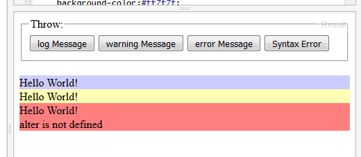 Die Funktion „log“ erwartet 2 Parameter einmal die Fehlerschwere und einmal die Message. Natürlich kann man die Message auch in eine HTML Seite einbinden und mit CSS jeweils darstellen.