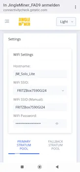 Die Einrichtung des JingleMiner BTC Solo Lite ist unkompliziert und auch für Einsteiger gut zu meistern.