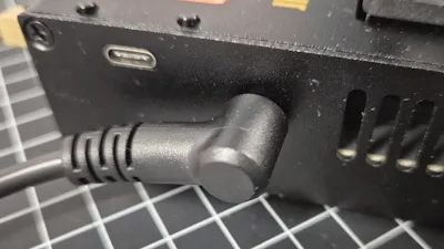 Auf der Oberseite links befinden sich zwei kleine Taster, während die linke Seite einen USB-C-Anschluss bereithält – allerdings nur zum Debuggen oder zum Flashen einer neuen Firmware, falls dies einmal erforderlich sein sollte.