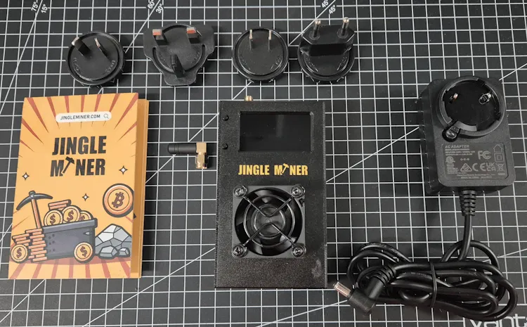 Im Lieferumfang des JingleMiner BTC Solo Lite 1.2T ist bereits alles enthalten, was man für den sofortigen Start benötigt. Neben dem Miner selbst liegt ein 5V/5A-Netzteil bei, das sich dank der mitgelieferten Adapter (US, EU, UK und AU) weltweit einsetzen lässt. Damit entfällt die Suche nach einer passenden Stromversorgung.