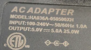 Der JingleMiner BTC Solo Lite 1.2T wird ab Werk mit einem 5V/5A-Netzteil ausgeliefert. Auf dem Papier reicht das völlig aus, da der Miner eine Leistungsaufnahme von 23 Watt (±5 %) hat – was ziemlich genau den Spezifikationen des Netzteils entspricht.