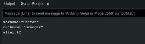 Die Ausgabe auf der seriellen Schnittstelle bzw. im seriellen Monitor sieht wie folgt aus: