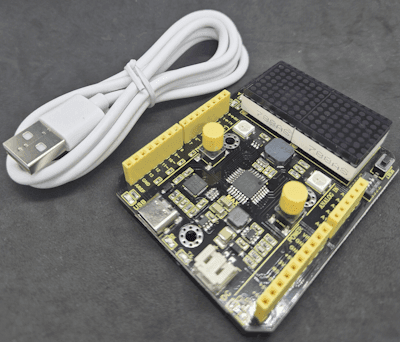 Das Keyestudio Max Board ist schon einige Zeit auf dem Markt erhältlich. In diesem Beitrag möchte ich dir diesen Mikrocontroller vorstellen und zeigen wie du das kleine Spiel „Fang den Regentropfen“ auf diesen programmierst.