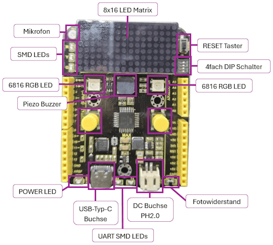 Der Mikrocontroller im Format des normalen Arduino UNO R3 verfügt über nachfolgende Features: