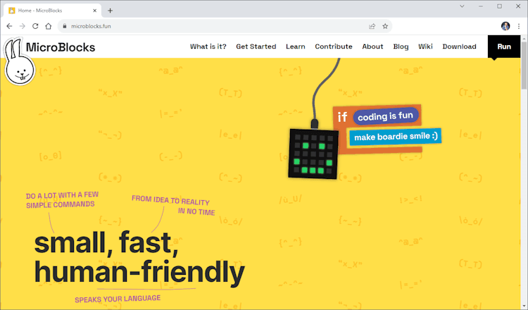 Bevor wir mit komplexen Schaltungen und Programmen starten, verschaffen wir uns zunächst einen kleinen Überblick über MicroBlocks mit dem WuKong2040. Dieses kannst du entweder herunterladen, oder du nutzt dieses wie ich im Browser Google Chrome.
