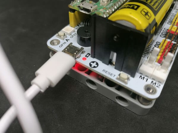 Das Modul WuKong2040 verfügt über eine Micro-USB Schnittstelle, über diese wird lediglich das Modul und der Pico mit Strom versorgt. Zum Programmieren des Pi Pico musst du den Mikrocontroller direkt mit dem PC verbinden.