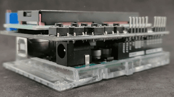 Das Shield ist fertig aufgebaut auf einer Platine, welche du direkt auf einen Arduino UNO R3 / R4, Leonardo oder Mega 2560 R3 stecken kannst. Du kannst mit zusätzlichen Stiftleisten noch die freien Pins des Mikrocontrollers nach oben führen und so an diese Pins weitere Komponenten (Sensoren, Aktoren) anschließen.