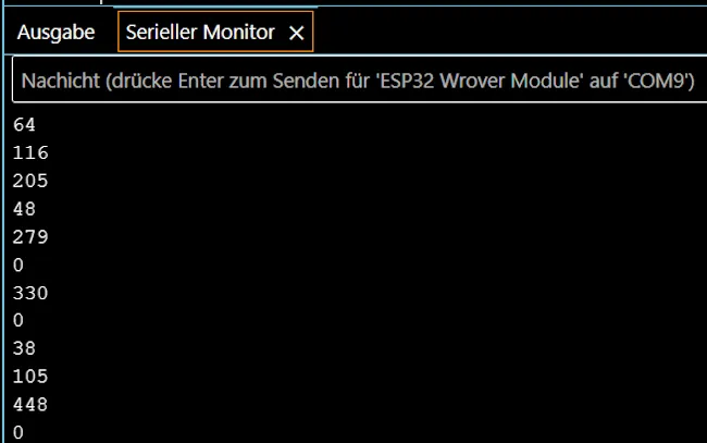 Die gelesenen Werte können wir nun im seriellen Monitor der Arduino IDE auslesen oder auch im seriellen Plotter in einem Liniendiagram visualisieren lassen.