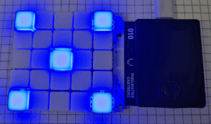 Im nachfolgenden Beispiel stelle ich die Augenzahl 1 dar, es sind alle NeoPixel deaktiviert außer das Mittlere in der dritten Zeile.