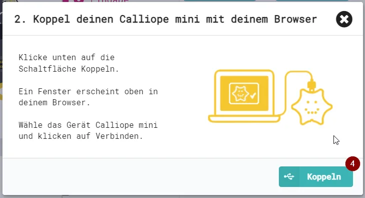Wie erwähnt verfügt die neue Version über WebUSB und du brauchst lediglich deinen Calliope Mini 3 mit dem PC zu verbinden und im Browser kannst du diesen dann koppeln und in MakeCode programmieren.