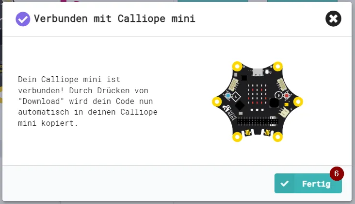 Wie erwähnt verfügt der neue Calliope über WebUSB d.h. du musst nicht mehr umständlich die HEX-Datei herunterladen und über einen Dateiexplorer diese auf das Laufwerk kopieren.