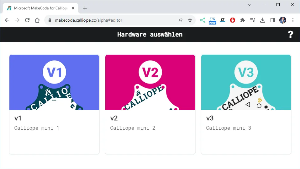 Die neue Version von MakeCode verfügt über eine Auswahl, welche dir nach dem Erstellen eines neuen Projektes angezeigt wird. Hier musst du deine Version des Mikrocontrollers auswählen.