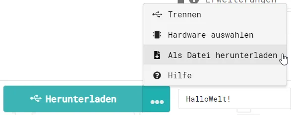 Wenn du dein Programm trotzdem als HEX-Datei herunterladen möchtest, dann kannst du das trotzdem noch über das Kontextmenü über die Schaltfläche mit den drei Punkten.