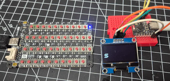In meinem Aufbau kommt ein ESP32-C3 Super Mini mit einem kleinen OLED-Display zum Einsatz. Das CardKB2 dient dabei als drahtlose Eingabeeinheit, während der ESP32-C3 die empfangenen Daten auswertet und auf dem Display darstellt.