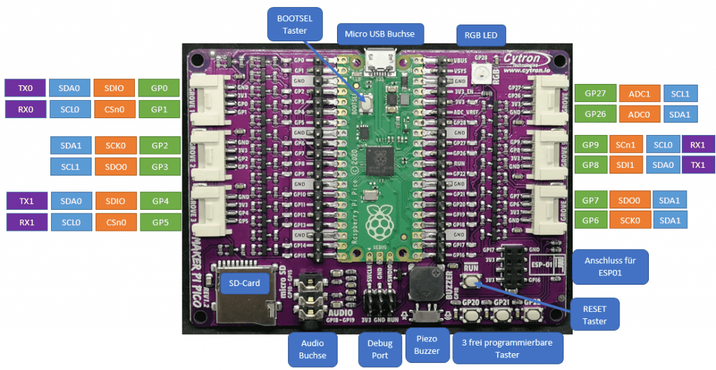 In diesem Beitrag möchte ich dir den neuen Mikrocontroller Maker Pi Pico von der Firma Cytron vorstellen.