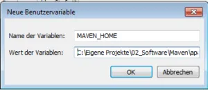 Für die Verwendung von Apache Maven muss die Umgebungsvariable MAVEN_HOME gesetzt werden.