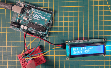 Für diese Anwendung reicht ein einfaches 20×2-Zeichen-Display völlig aus, da wir lediglich zwei Werte darstellen: die Herzfrequenz (HF) und die Blutsauerstoffsättigung (SpO₂). Solche LCDs gibt es in verschiedenen Größen und Varianten – oft schon mit I²C-Modul, was die Verdrahtung deutlich vereinfacht.