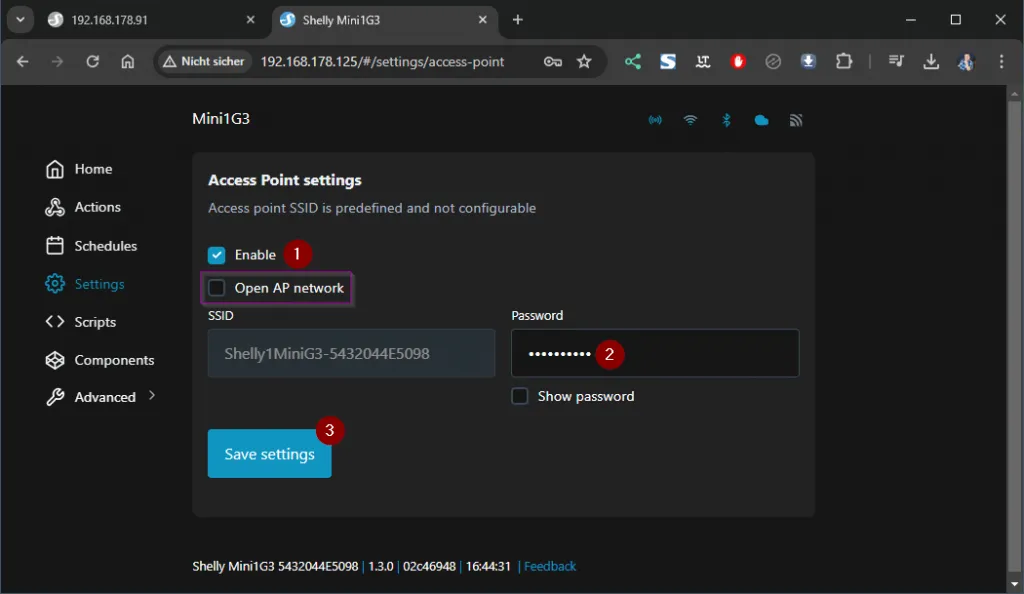 Einrichten eines Shelly 1 Mini Gen3 als Access Point mit Range Extender