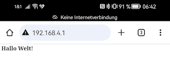 Wenn wir nun den Browser öffnen und die IP-Adresse des Access Point eingeben, erhalten wir als Antwort eine kleine Webseite mit dem Text „Hallo Welt!“.