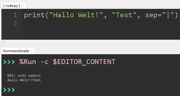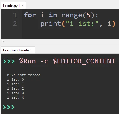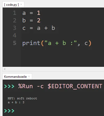 - Interaktive Eingabeaufforderung (REPL): MicroPython bietet eine interaktive Eingabeaufforderung (REPL – Read-Eval-Print Loop), die es ermöglicht, Befehle sofort über USB-Serial auszuführen. Dies ist besonders nützlich für schnelles Testen und Debuggen von Code auf der Hardware.