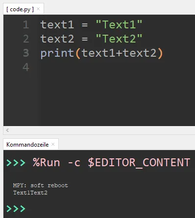 text1 = "Text1" zahl1 = 2 print(text1+str(zahl1))