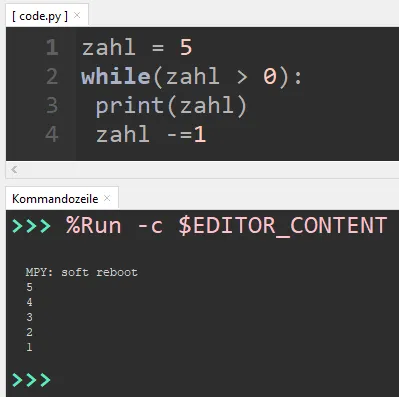 zahl = 5 while(zahl > 0): print(zahl) zahl -=1