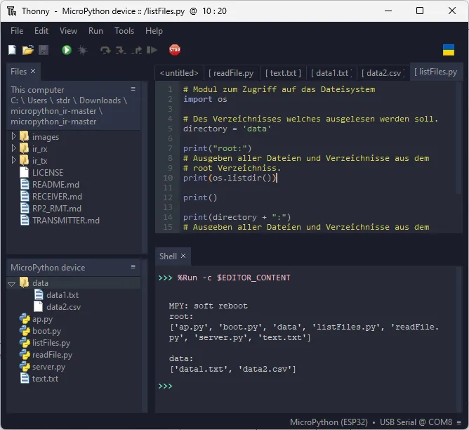 Ein kleines Beispiel – Lesen einer Datei auf dem Mikrocontroller via MicroPython