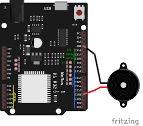 Schaltung – Piezo Buzzer am ESP32 D1 R32