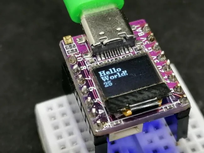 Auf der Vorderseite des Mikrocontrollers findest du das kleine 0,42″ LCD-Display sowie die USB-C Schnittstelle. Die Pin Beschriftungen sind ebenfalls dort angebracht. Die Rückseite ist mit den beiden Tastern RESET & BOOT bestückt, zusätzlich findet sich dort der Batterieanschluss vom Typ SH1.0 4P.